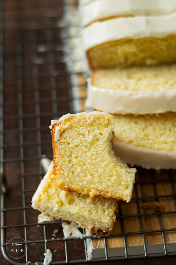Once cooled, the beautiful creamy frosting is made with freshly squeezed lemon juice, powdered sugar, milk or cream, and of course, vanilla extract. It’s the most perfect salty sweet accompaniment.